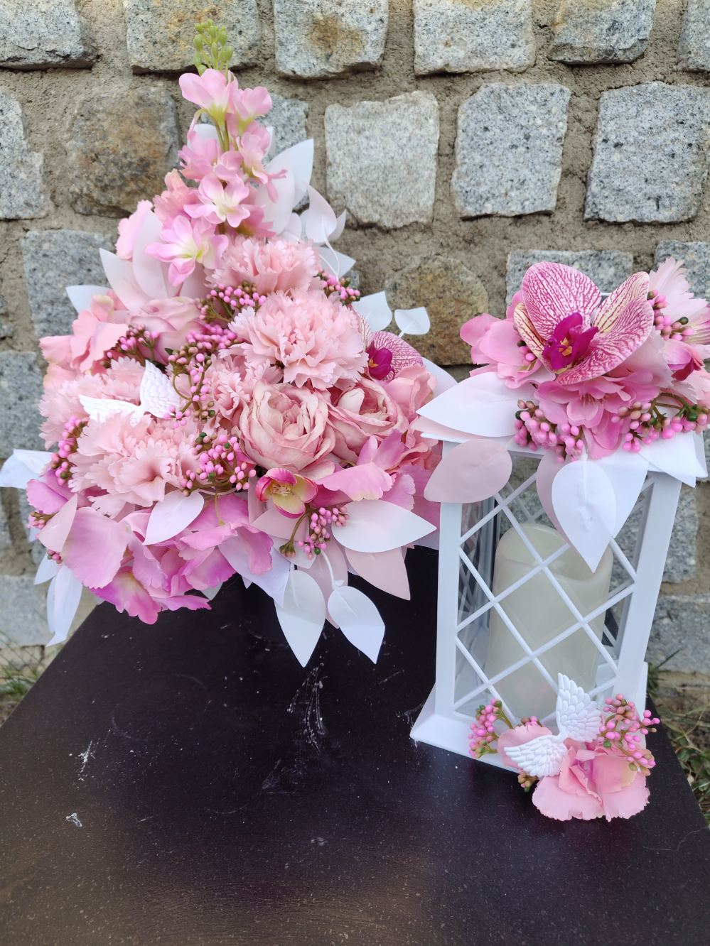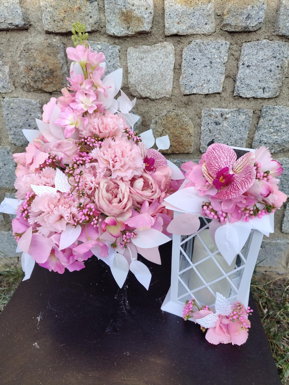 KOMPLET SOLARNA LATARENKA + BUKIET KOLOR RÓŻOWY