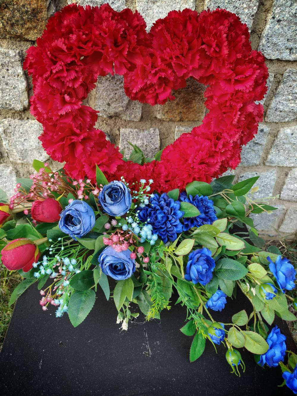 Ta elegancka dekoracja nagrobna to wyjątkowy dodatek do upamiętnienia bliskiej osoby. Wykonana z wysokiej jakości sztucznych kwiatów w odcieniach bł i bieli, ozdoba przyciąga wzrok i jest odporna na warunki atmosferyczne. Dekoracja idealnie nadaje się do ozdobienia nagrobka, dodając mu subtelnej elegancji i trwałego uroku. Wybierając nasze trwałe dekoracje nagrobne, zapewniasz pomnikowi piękno i wyraz pamięci przez długi czas.