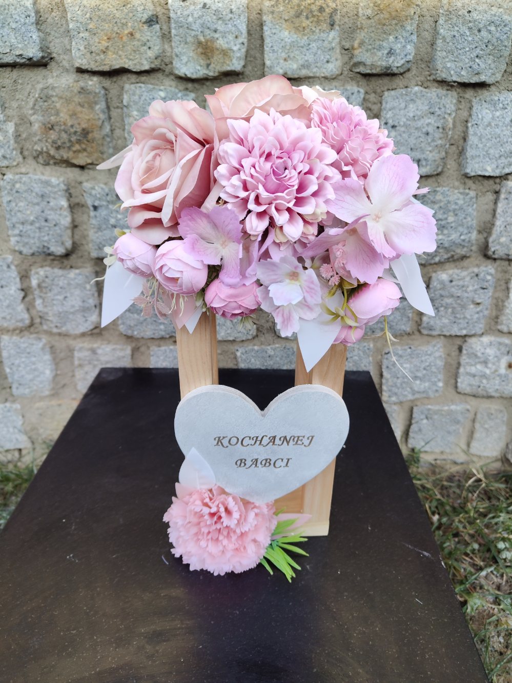 Materiał: Wysokiej jakości sztuczne kwiaty i  dodatki odporne na warunki atmosferyczne, drewniany lampion.
